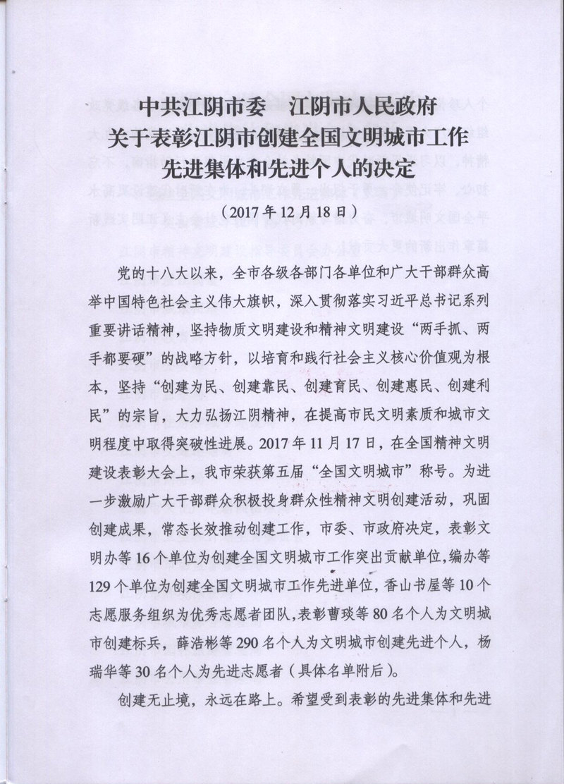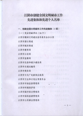全国文明城市,是一个城市最有价值的品牌,是一座城市的最高荣誉,创建全国文明城市是优化经济发展环境,营造健康、文明、向上的良好社会风尚的重要途径,也是提高公民文明素质、满足人民群众不断增长的精神文化需要,作为江阴城市市政基础设施建设的主力军之一,公司高度重视文明城市创建工作,紧紧围绕上级主管提出的创建文明城市的目标任务和工作要求,切实加强领导,明确目标,落实措施,责任到位,扎扎实实开展文明创建活动,树优良作风、抓优质服务、创优美环境、树文明形象,取得了明显成效。