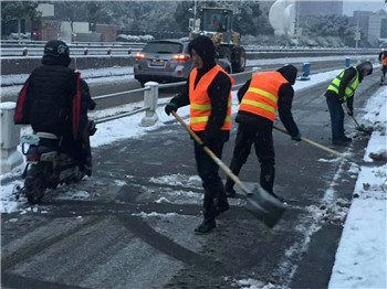 2018年1 月25日,江阴遭遇了2008年以来最强降雪,为应对暴雪,公司出动人员314人次,撒盐车29车次,铲雪车6车次,铲车21车次,连续四天从凌晨三四点钟起进行除冰扫雪作业,保障江阴市民雪后出行安全。