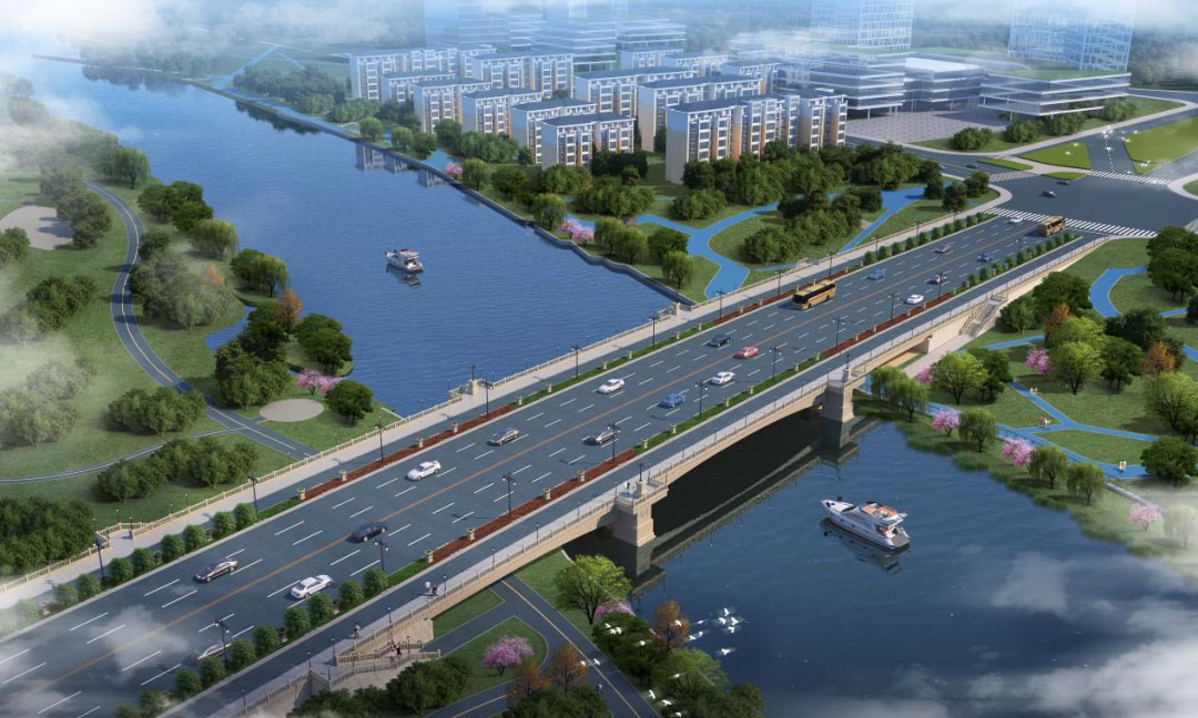 西门桥拆建工程项目总投资约1.3亿元,西起通江路,东至环城西路,包含西门桥桥梁工程及接线段工程,全长373米,宽40米,双向六车道,其中新建西门桥桥梁全长150米,共三跨,采用变截面预应力混凝土现浇连续箱梁结构。